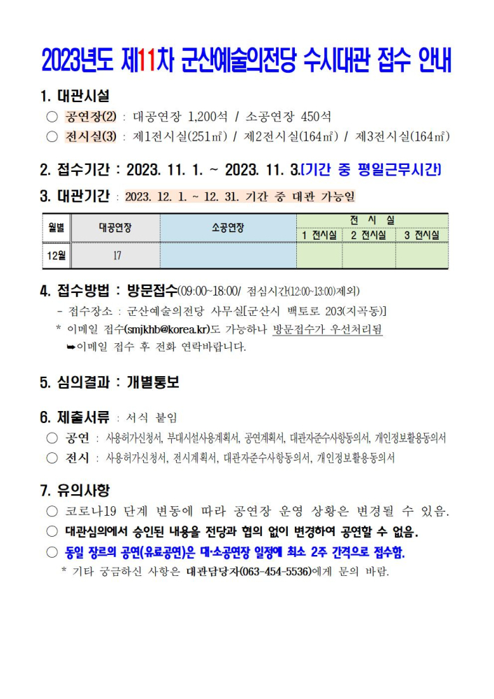 49 2023년도 군산 예술의전당 수시대관(11차) 접수 안내 다운받기 예술의전당관리과 23.10.30 869