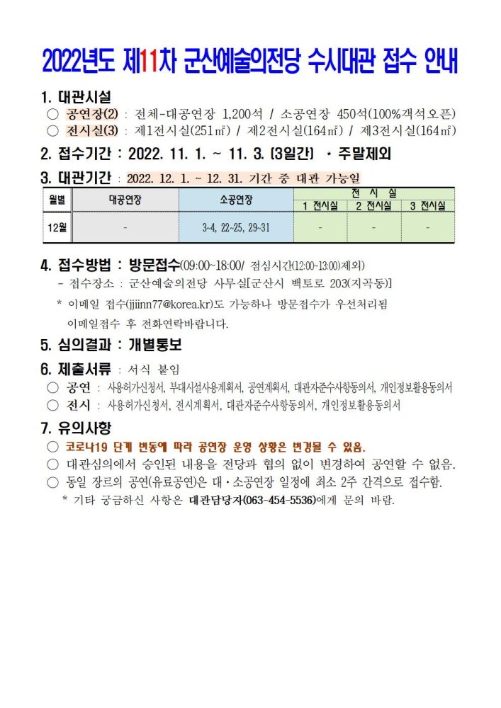 36 2022년 군산예술의전당 수시대관(11차) 접수안내 다운받기 예술의전당관리과 22.10.26 1306