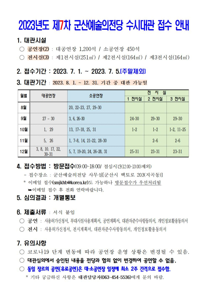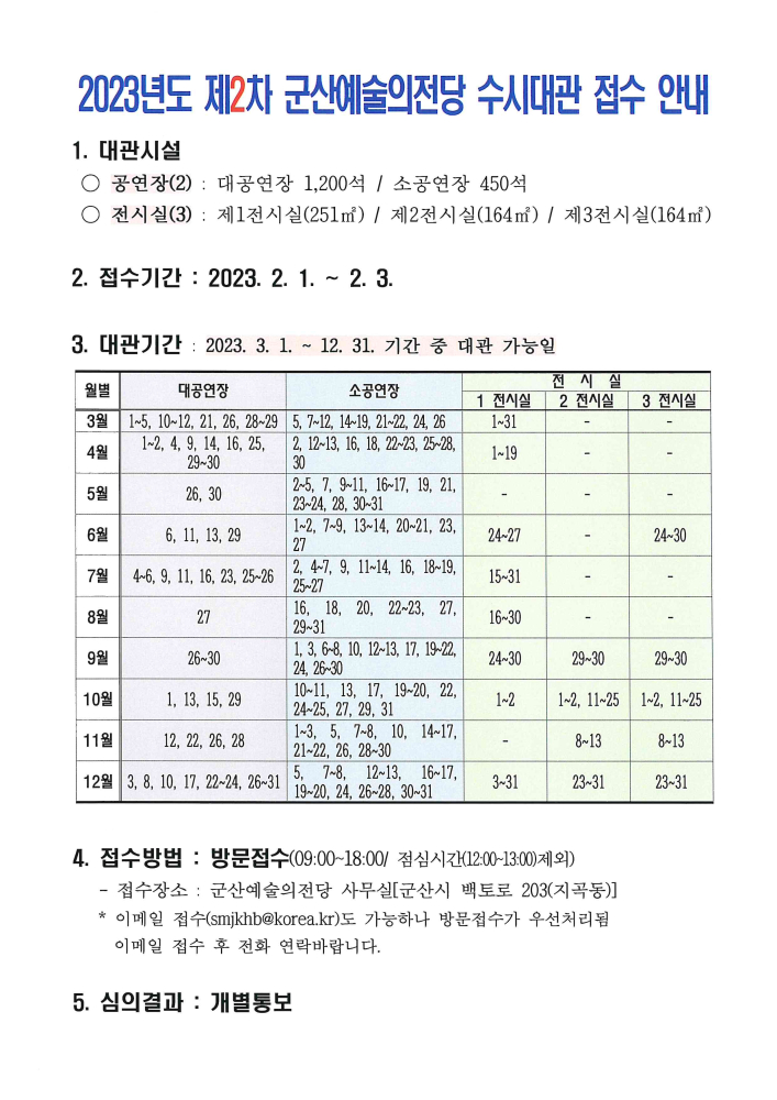 39 2023년 군산예술의전당 수시대관(1차) 접수안내 다운받기 예술의전당관리과 22.12.28 1368