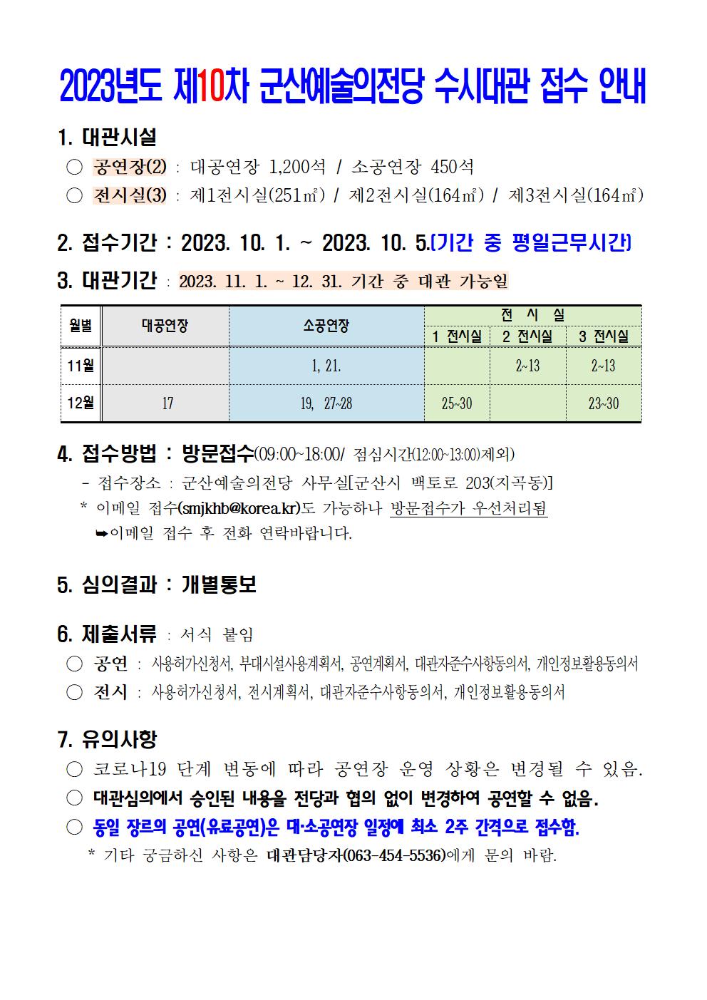 2023년도 군산예술의전당 수시대관(10차) 접수 안내