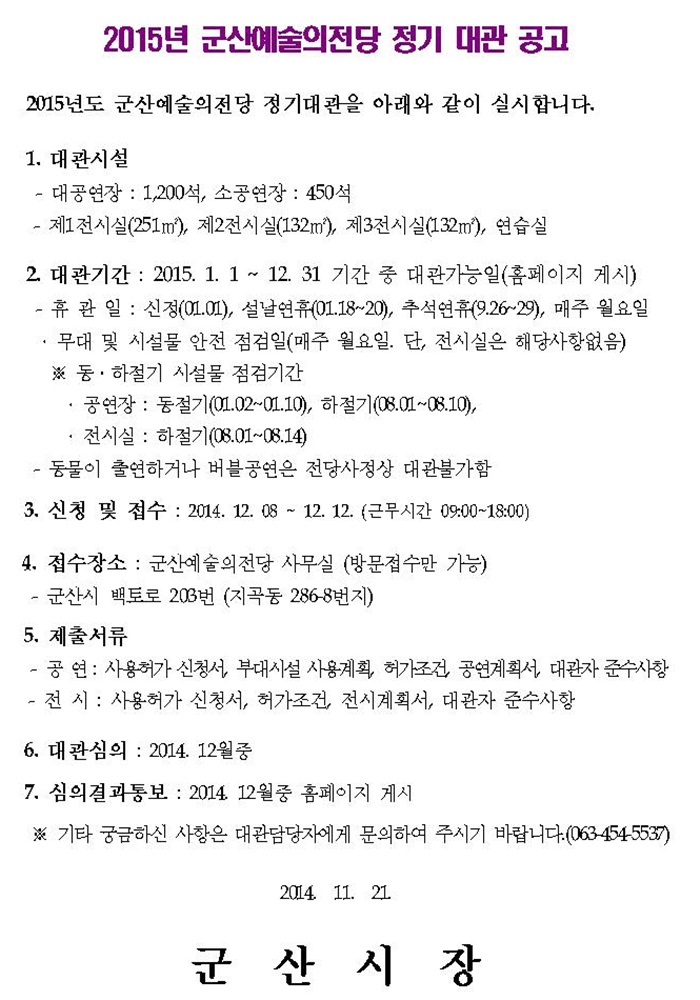 [공고] 2015년 군산예술의전당 정기대관 공고