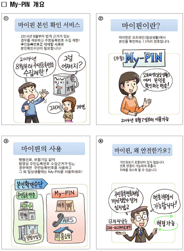 본인을 확인하는 13자리 번호인 (가칭)마이핀 서비스(14.8.7.~)를 도입, 제공할