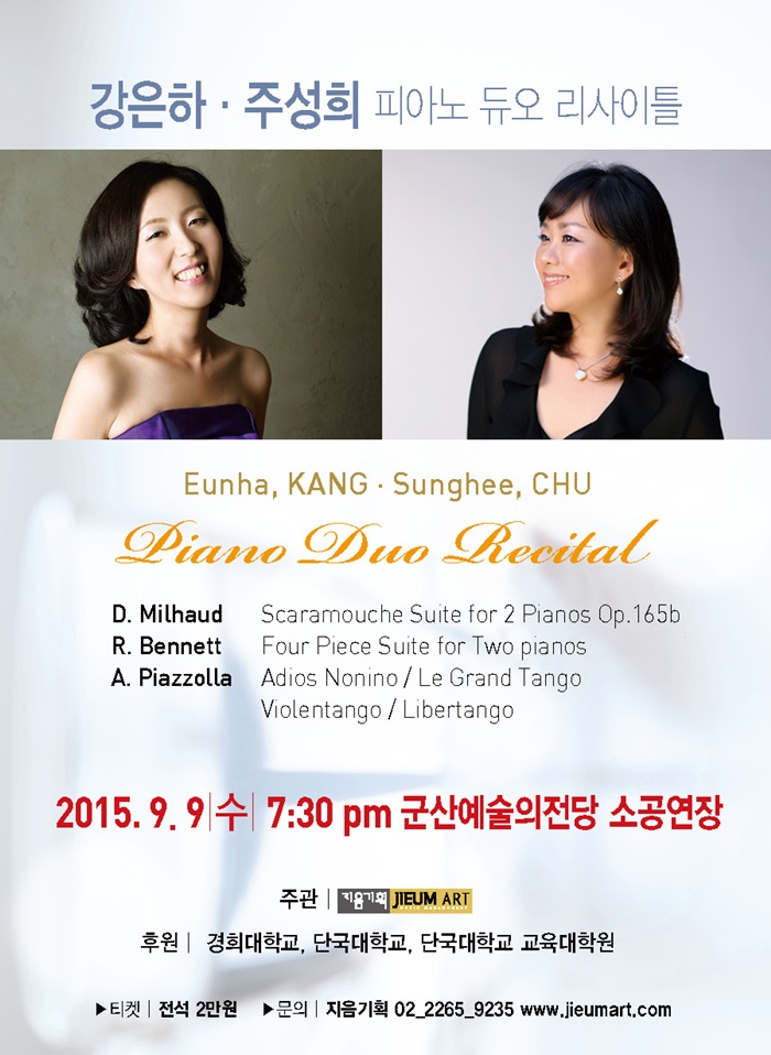 112 [대관공연안내] 9월 9일 소공연장 19:30 -강은하 주성희 피아노 듀오 리사이틀 다운받기 예술의 전당 15.08.20 1708
