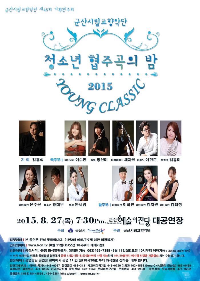 [상주단체공연안내] 8월 27일 대공연장 19:30 - 군산시립교향악단 청소년 협주곡의 밤
