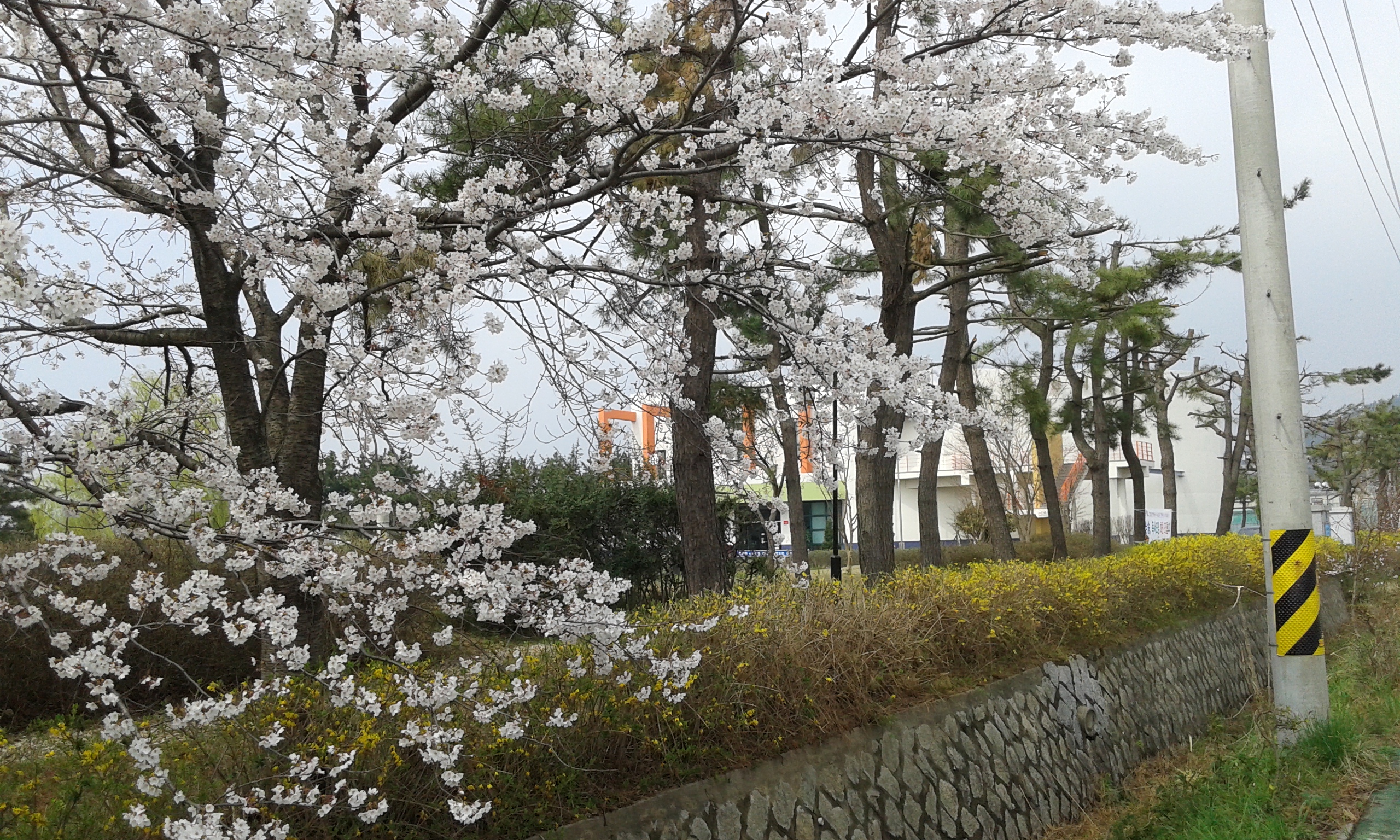 문학관에는 개나리 벛꽃이 만개하여 환한미소로 봄을 알리고 있습니다.
