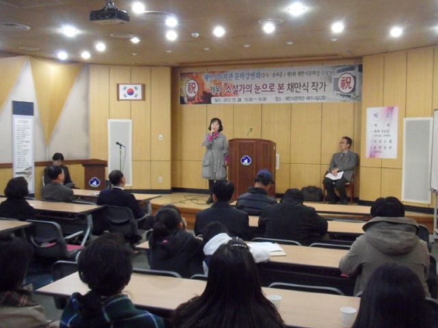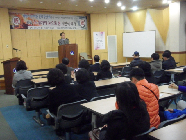 송하춘 교수님의 문학강연회 현장 사진입니다.