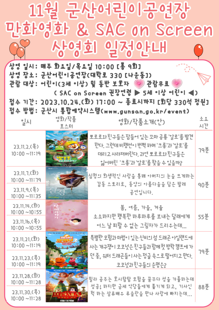66 군산어린이공연장 11월 SAC on Screen 상영회「심청」일정안내 다운받기 예술의전당관리과 23.10.19 714