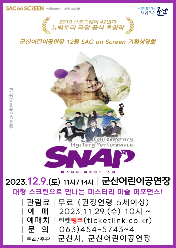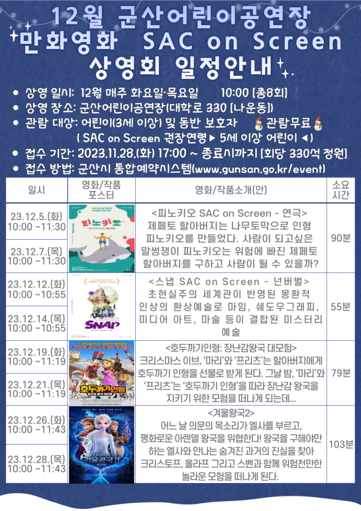 69 군산어린이공연장 12월 기획상영회「스냅」 다운받기 예술의전당관리과 23.11.24 723