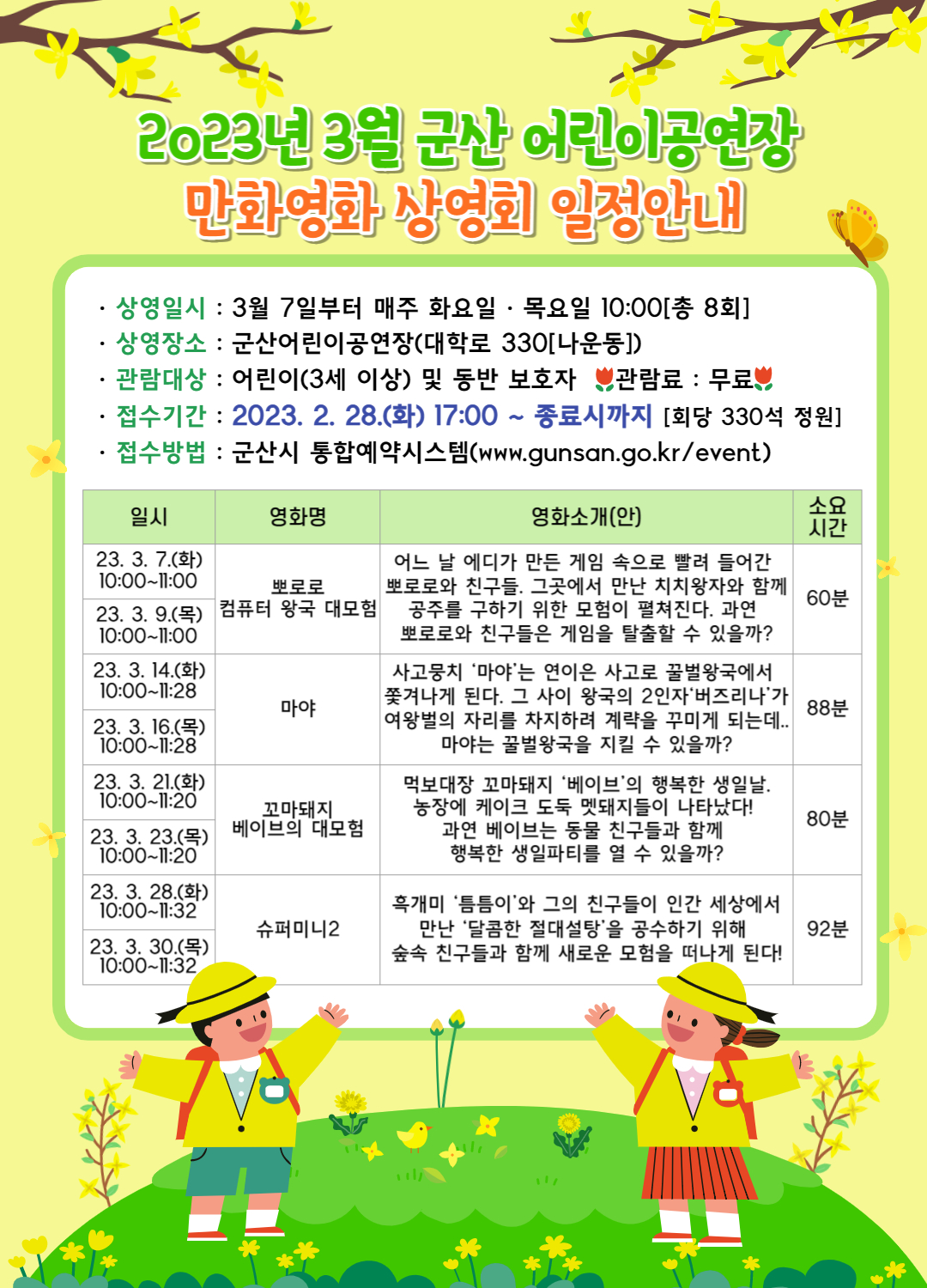 2023년 3월 어린이공연장 만화영화 상영 안내