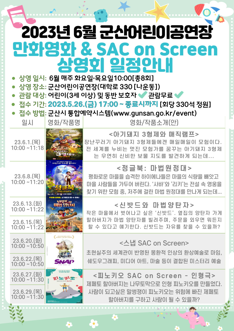 2023년 6월 어린이공연장 만화영화 & SAC on Screen 상영안내