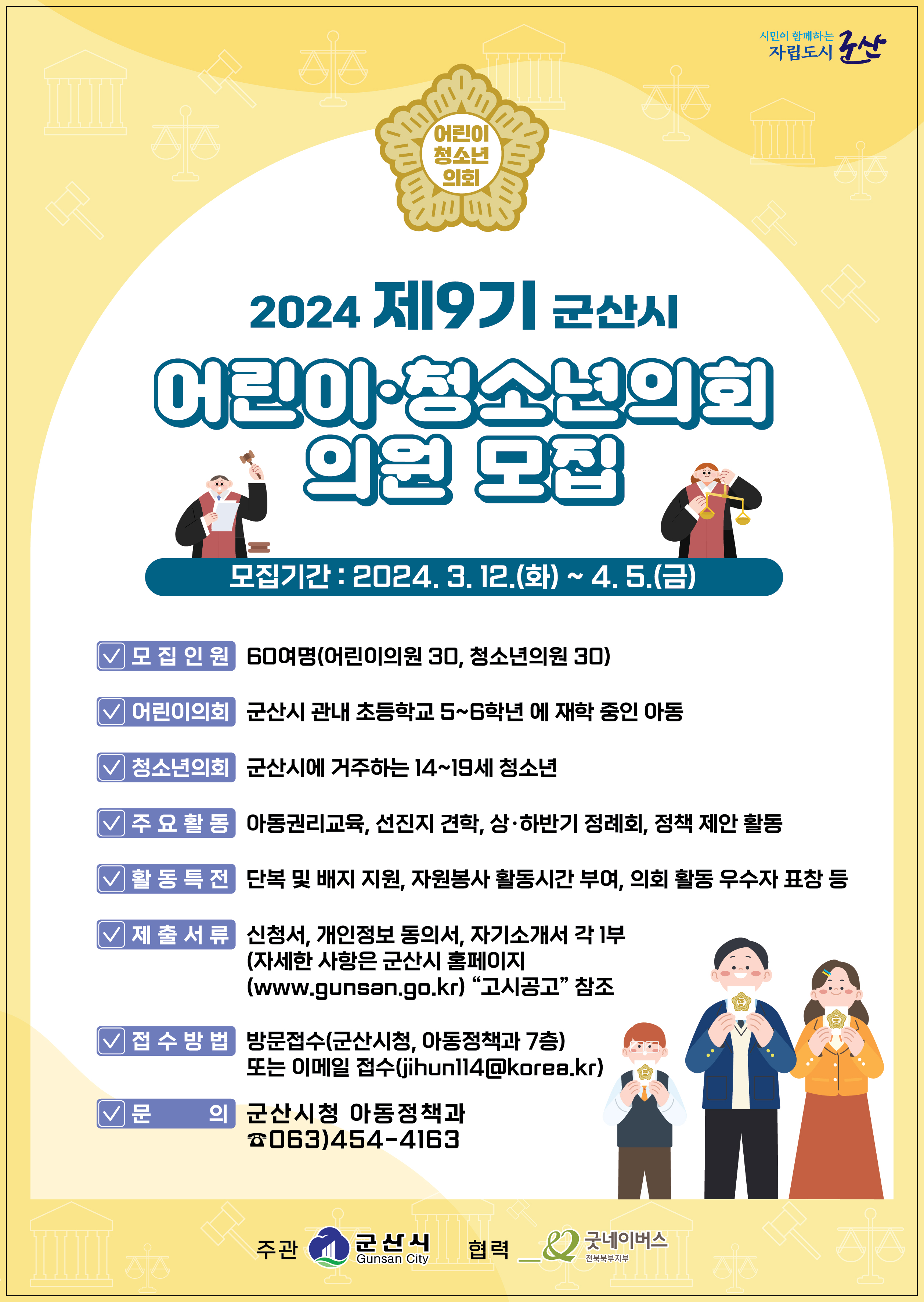 - 어린이의원: 군산시 관내 초등학교 5~6학년 어린이