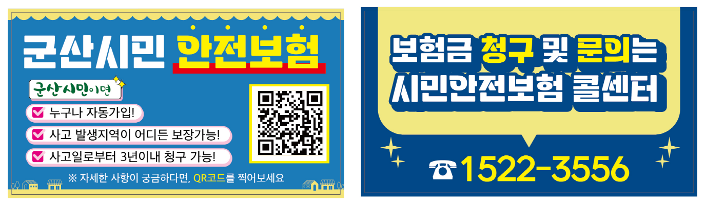 군산시민의 안전 복지 향상을 위하여 군산시민안전보험 홍보물 및 안내문을 붙임과 같이 첨부하오니 참고하시기 바랍니다.