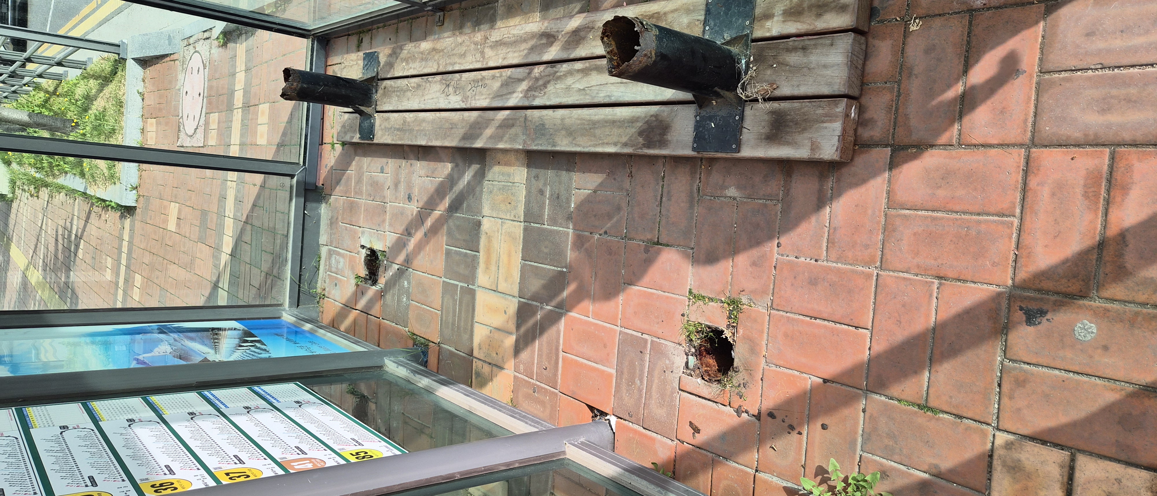 조촌동 센트럴파크 앞 버스정류장 의자가 노후로 인해 보이는 파손이 되었습니다. 뒤집어진채 방치 되어 있는데 부러진 철제 다리가 많이 녹슬고 날카로워 보입니다. 어린이들도 많이 버스를 기다리는 곳인데 매우 위험합니다. 교체가 바로 이루어지지 않는다면 부러진 의자와 구멍이라도 바로 조치 바랍니다.