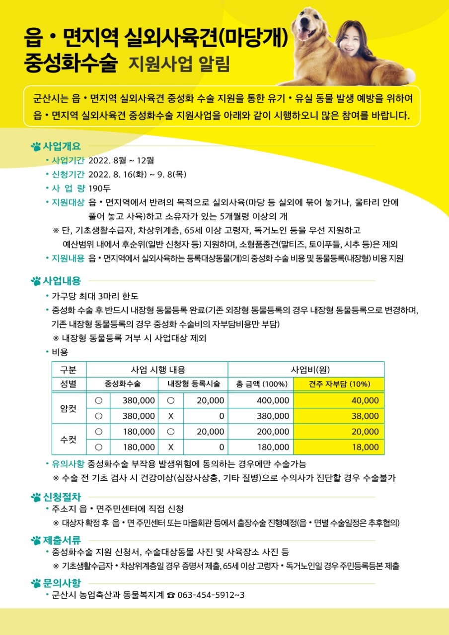 | 75 | 2022년 읍·면지역 실외사육견 중성화수술 지원사업 |