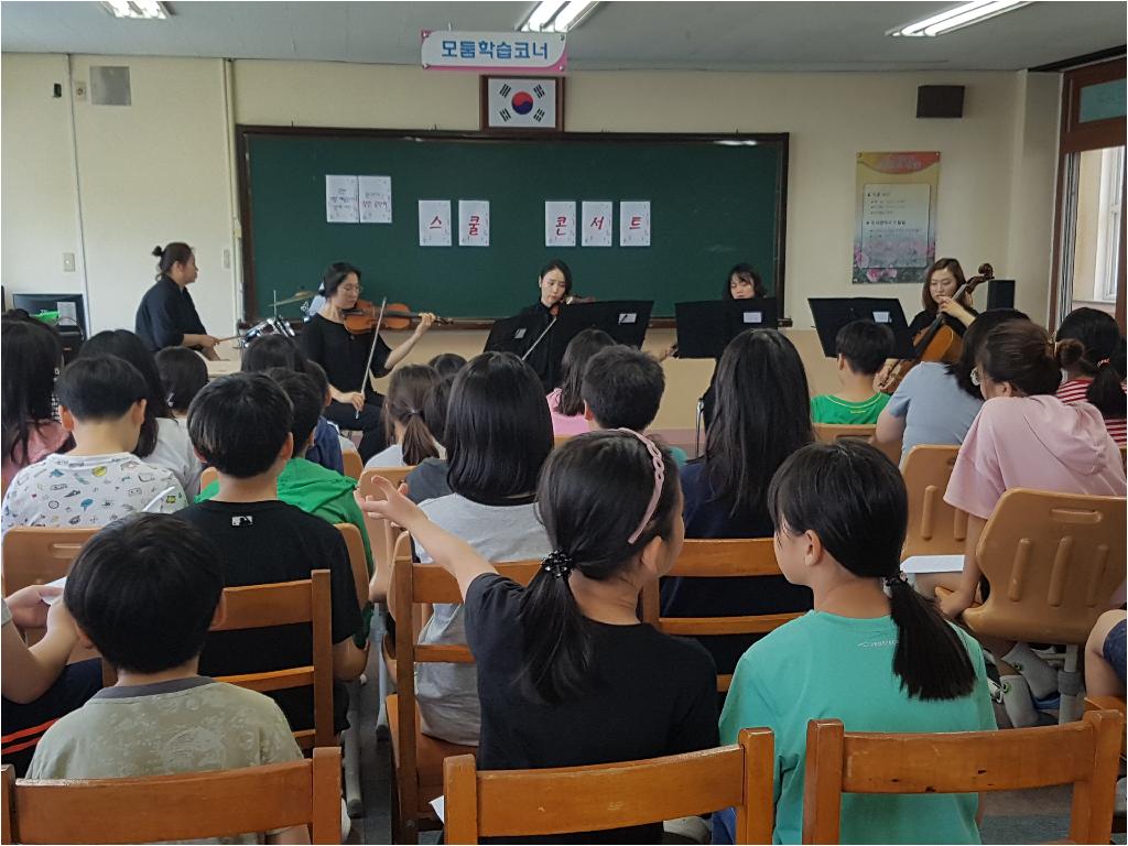 준비과정 부터 섬세함이 느껴졌습니다. 사전 답사를 통해, 강당은 크지만 전교생이 적은 학교의 상황을 배려하여 도서실로 장소를 변경하고, 연주자 분들과 아이들의 소통이 잘 되는 자리배치를 제안하여 주셨습니다.