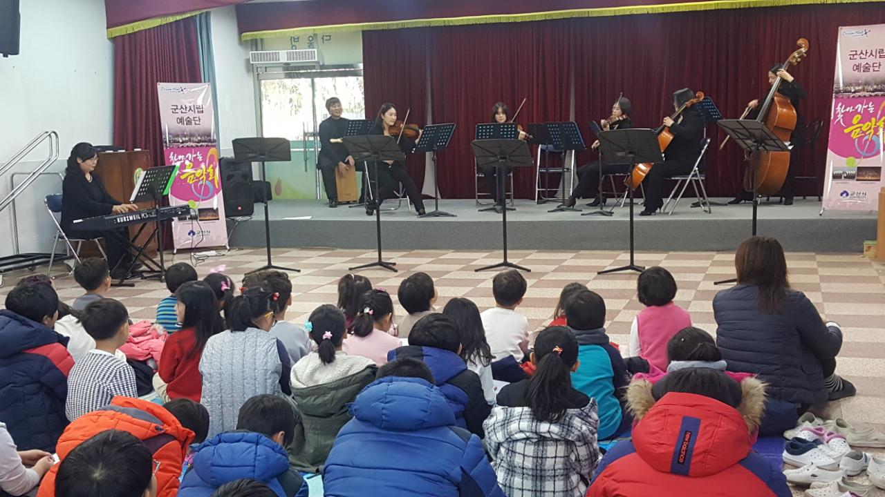 2017년도 1월부터 찾아가는 스쿨클래식을 시작으로 올 해 마지막 개정초등학교를 방문하여 아이들과 함께 음악회를 진행하였습니다.
