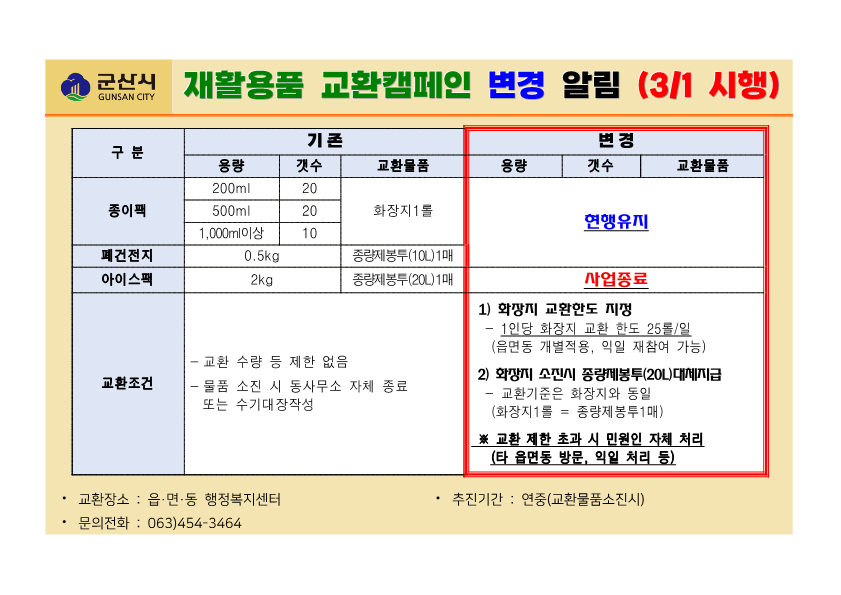| 114 | 재활용품 교환사업 내용 변경 |