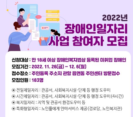 | 698 | 2022년 장애인일자리사업 참여자 모집안내 |