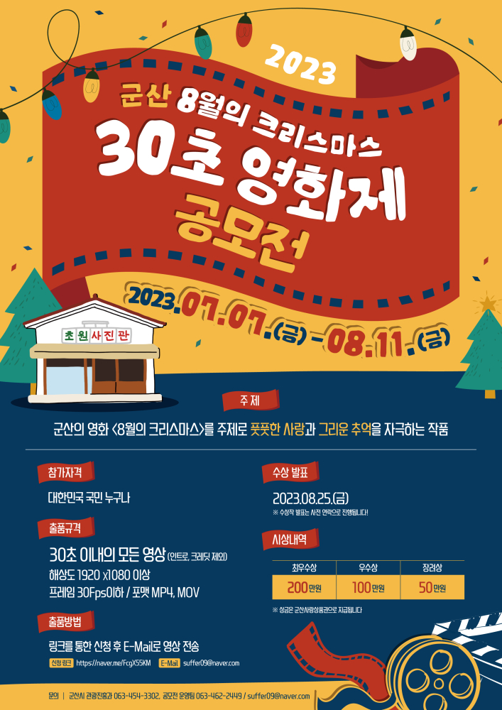 | 897 | 「군산 8월의 크리스마스 30초 영화제 공모전」개최 알림 |