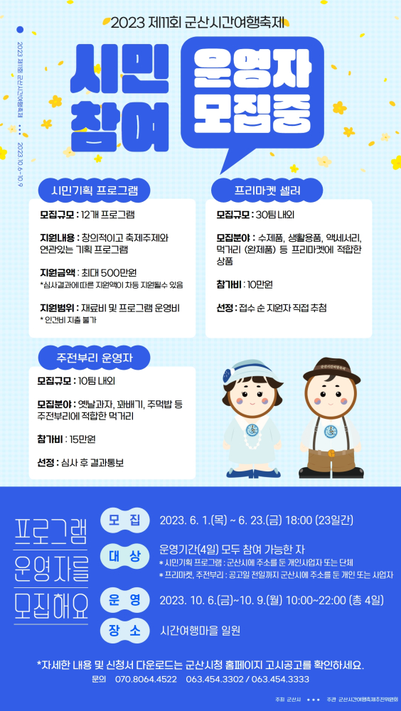 | 890 | 2023년 제11회 군산시간여행축제 시민참여 프로그램 참여자 모집 |