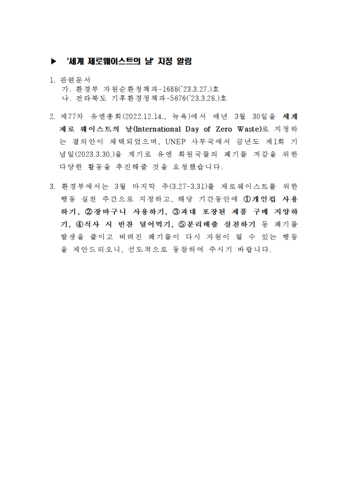 | 856 | '세계 제로웨이스트의 날' 지정 알림 |