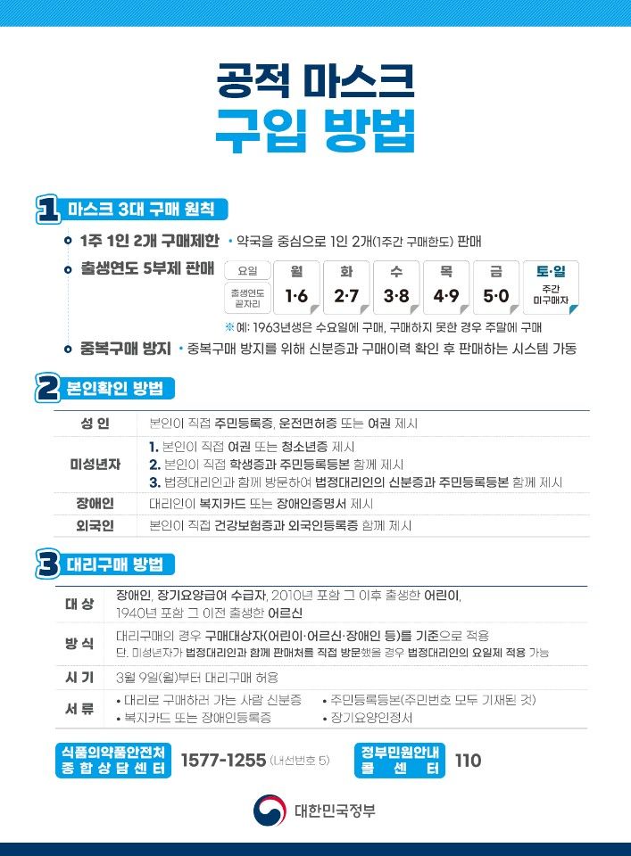 코로나19 관련 마스크 5부제 시행에 따른 본인 확인 시,