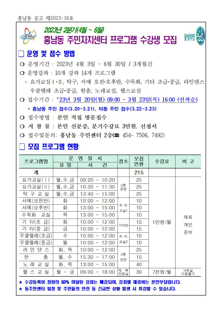 | 309 | 2023년 2분기 흥남동 주민자치센터 프로그램 수강생 모집 |