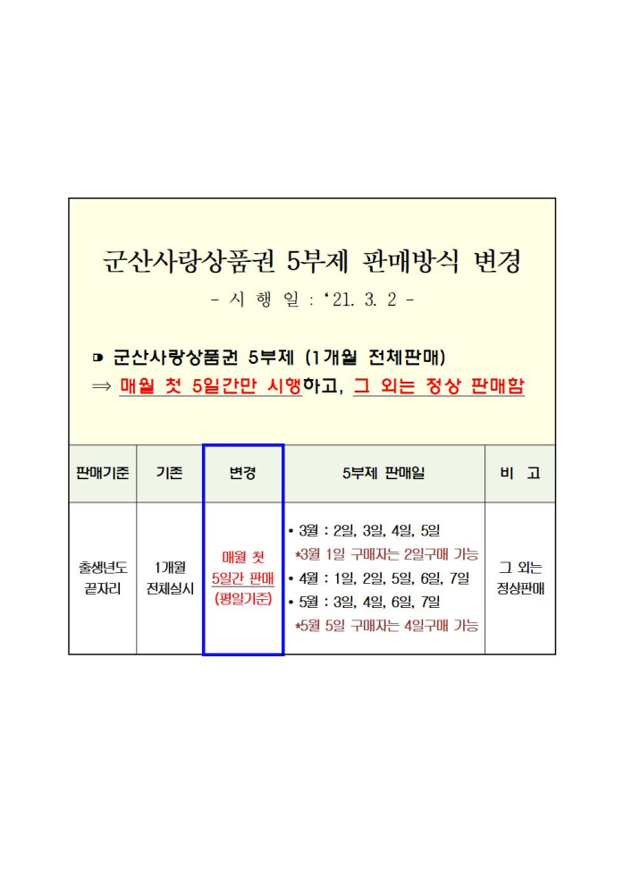 | 217 | 군산사랑상품권 5부제 판매방식 변경 안내 |
