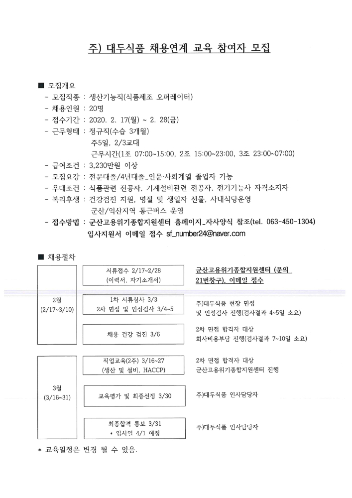| 131 | (주)대두식품 채용연계 교육 참여자 모집안내 |