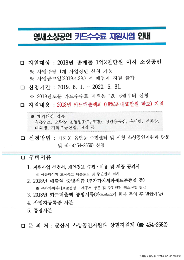 | 124 | 군산시 소상공인 특례보증 지원사업 안내 | 흥남동 | 20.02.06 | 1958 | |