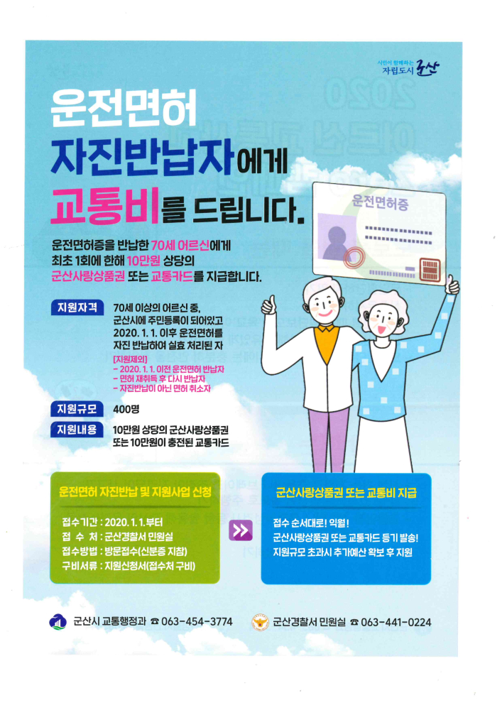 | 127 | 고령자 운전면허 자진반납자에게 교통비를 드립니다! |