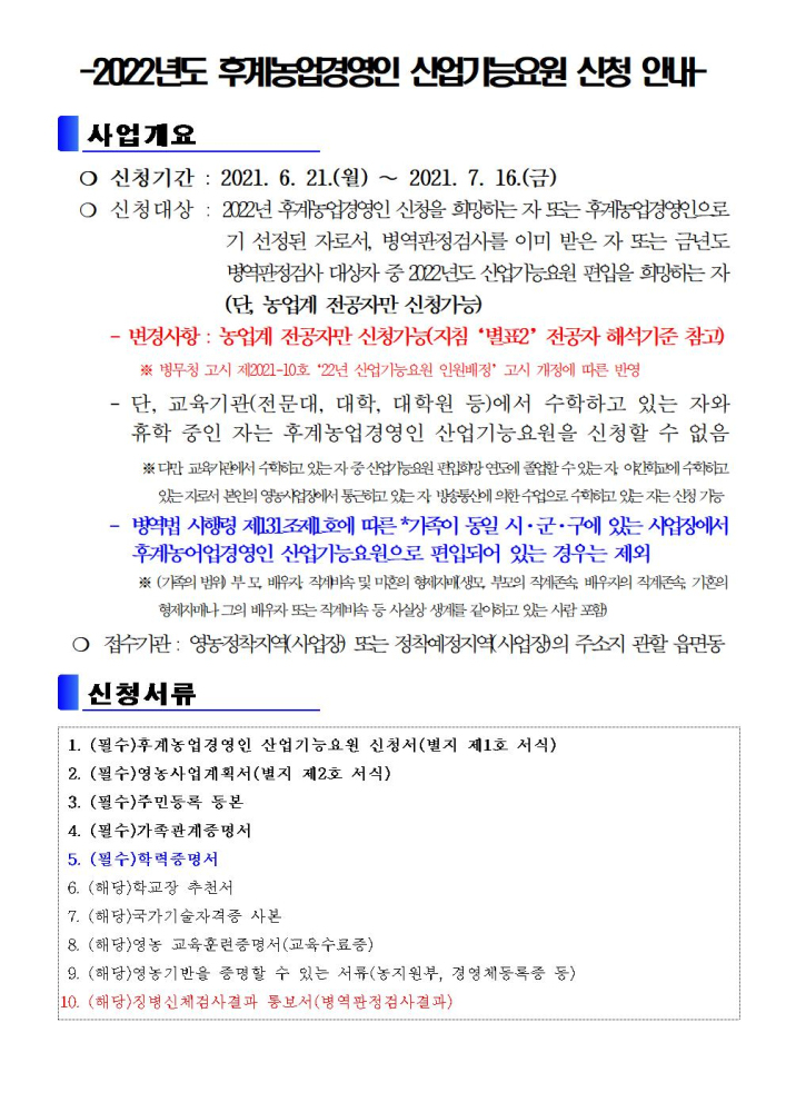 | 71 | 2022년 후계농업경영인 산업기능요원 신청 안내 |
