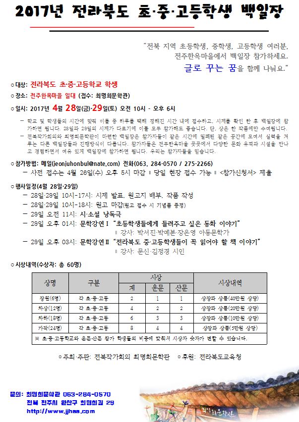 7136 [최명희문학관]2017년 전북초중고등학생 백일장 다운받기 *** 17.04.14 3446