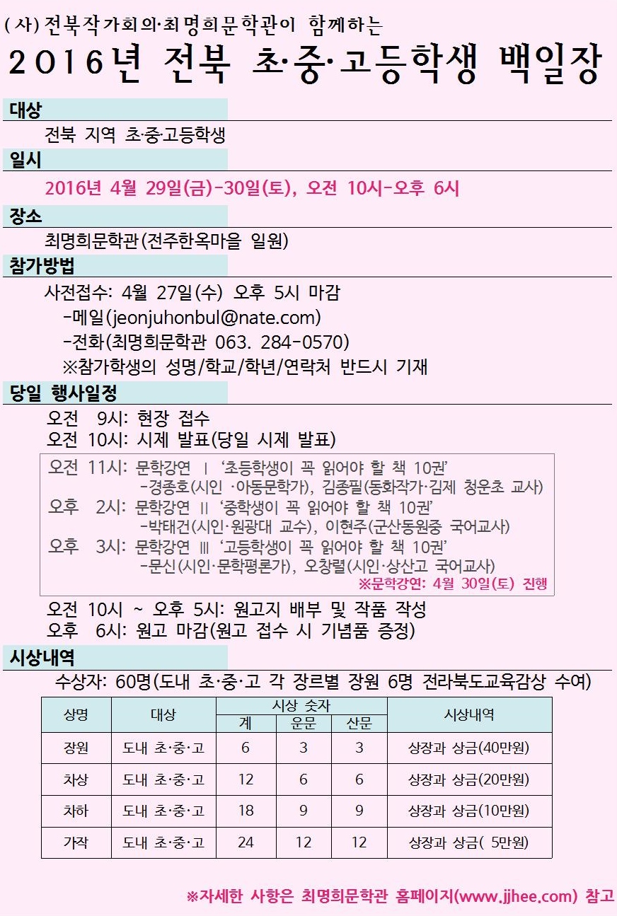 | 6750 | [최명희문학관]2016년 전북 초·중·고등학생 백일장 |