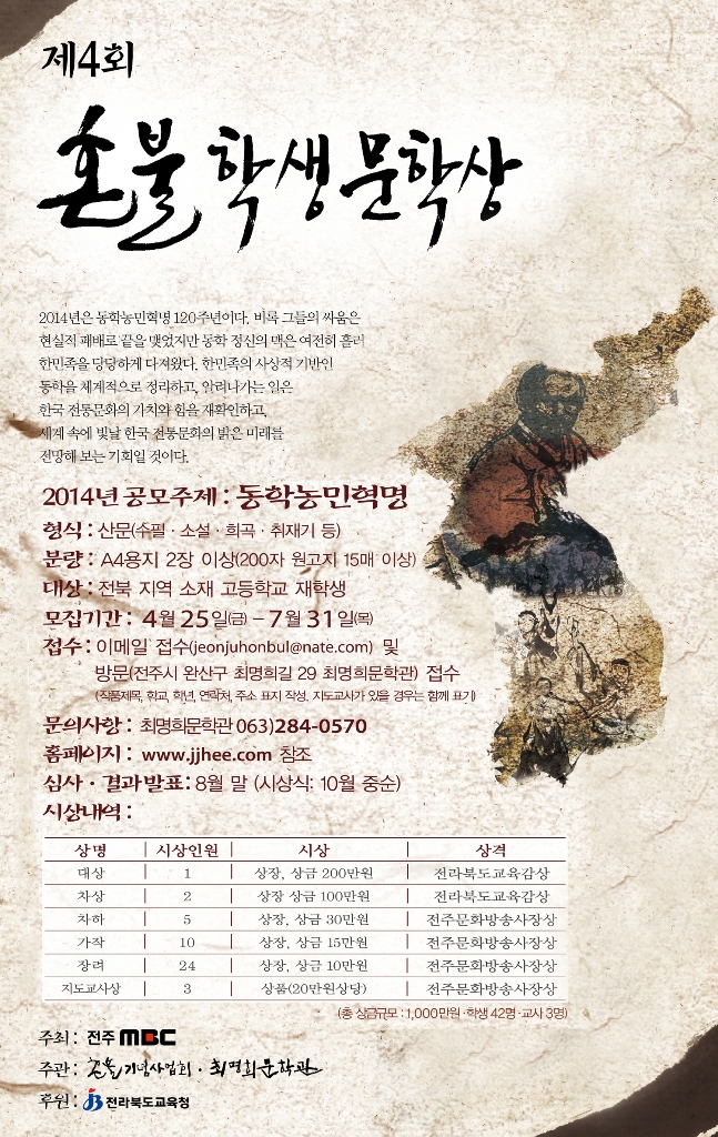 6194 [최명희문학관] 제4회 혼불학생문학상 공모 다운받기 *** 14.05.01 3697