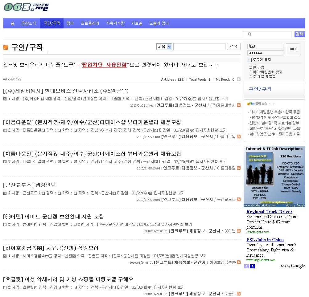 군산시 홈페이지는 운영체제(OS):Windows 7이상, 인터넷 브라우저:IE 9이상, 파이어 폭스, 크롬, 사파리에 최적화 되어있습니다.