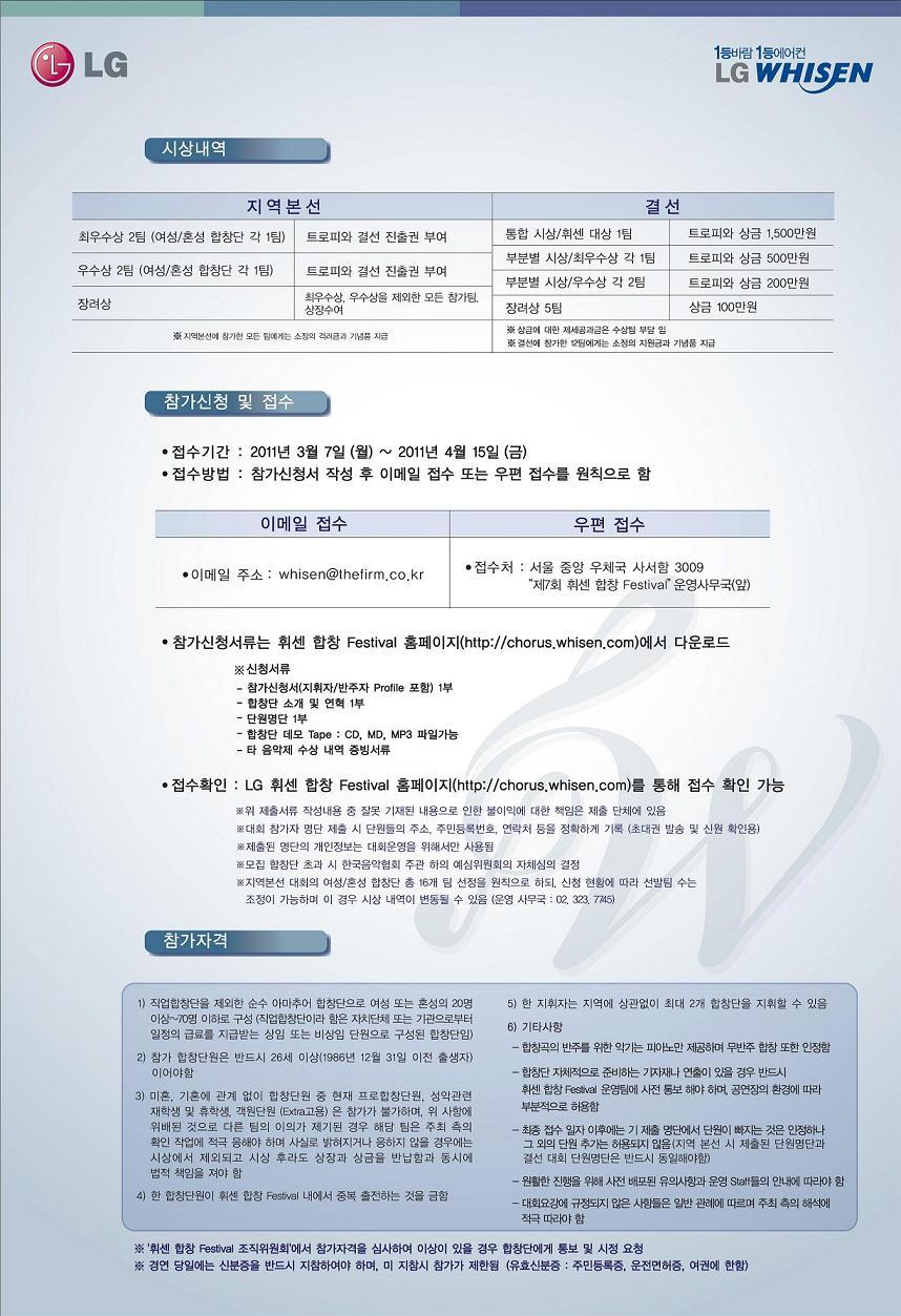 이메일 : whisen@thefirm.co.kr?우 편 : 서울 중앙 우체국 사서함 3009 “휘센 합창 Festival” 운영사무국 (앞)