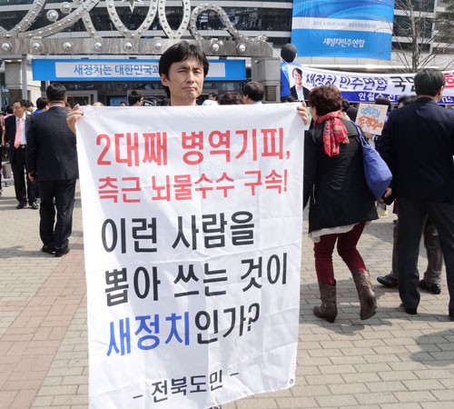 “여러분~ 이런 인물을 세우는 것은 헌정치입니다. 새 정치 하려면 자격미달 정치인은 확실