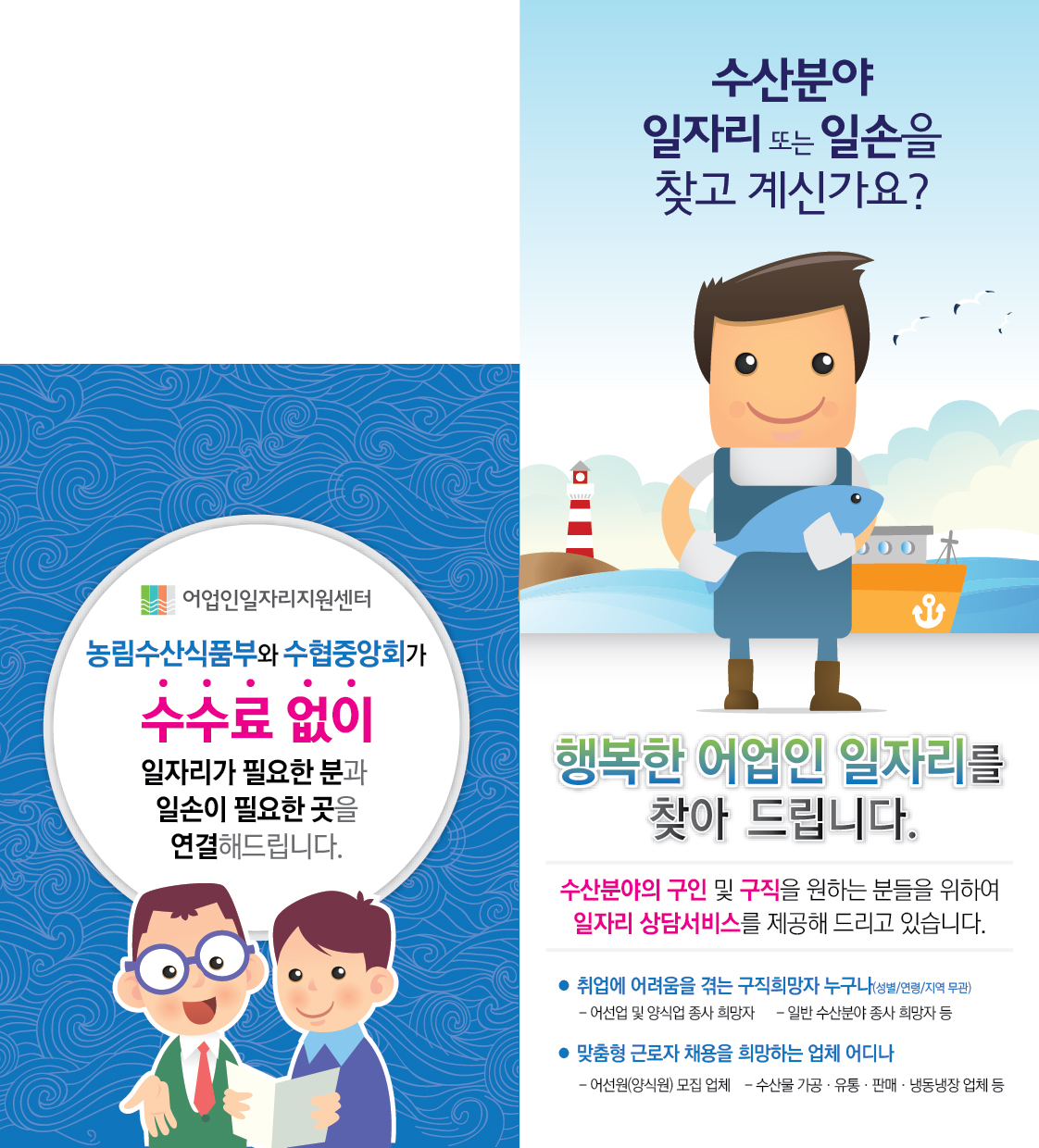 해양수산부와 수협중앙회가 지원하는 어업인일자리지원센터입니다.