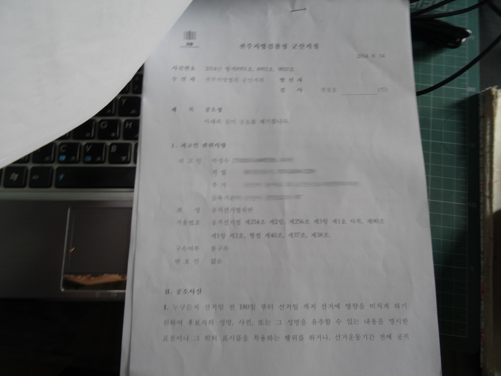 받고 있는데, 공소장에도 시청게시판에 글 올린 것은 문제시 되어 있지 않거든요.(첨부파일에 넣습니다.)