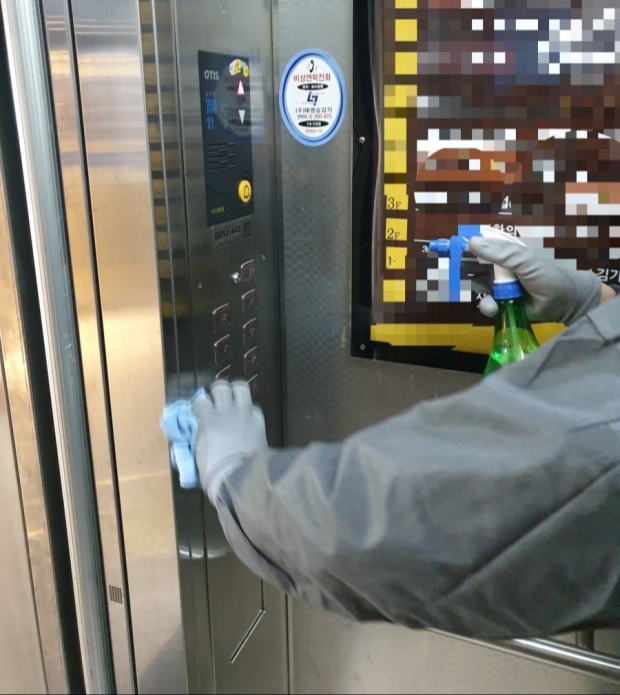 지금 신종코로나으로 엘리베이터버를 척결으로 안전하게 닦아주는 가요