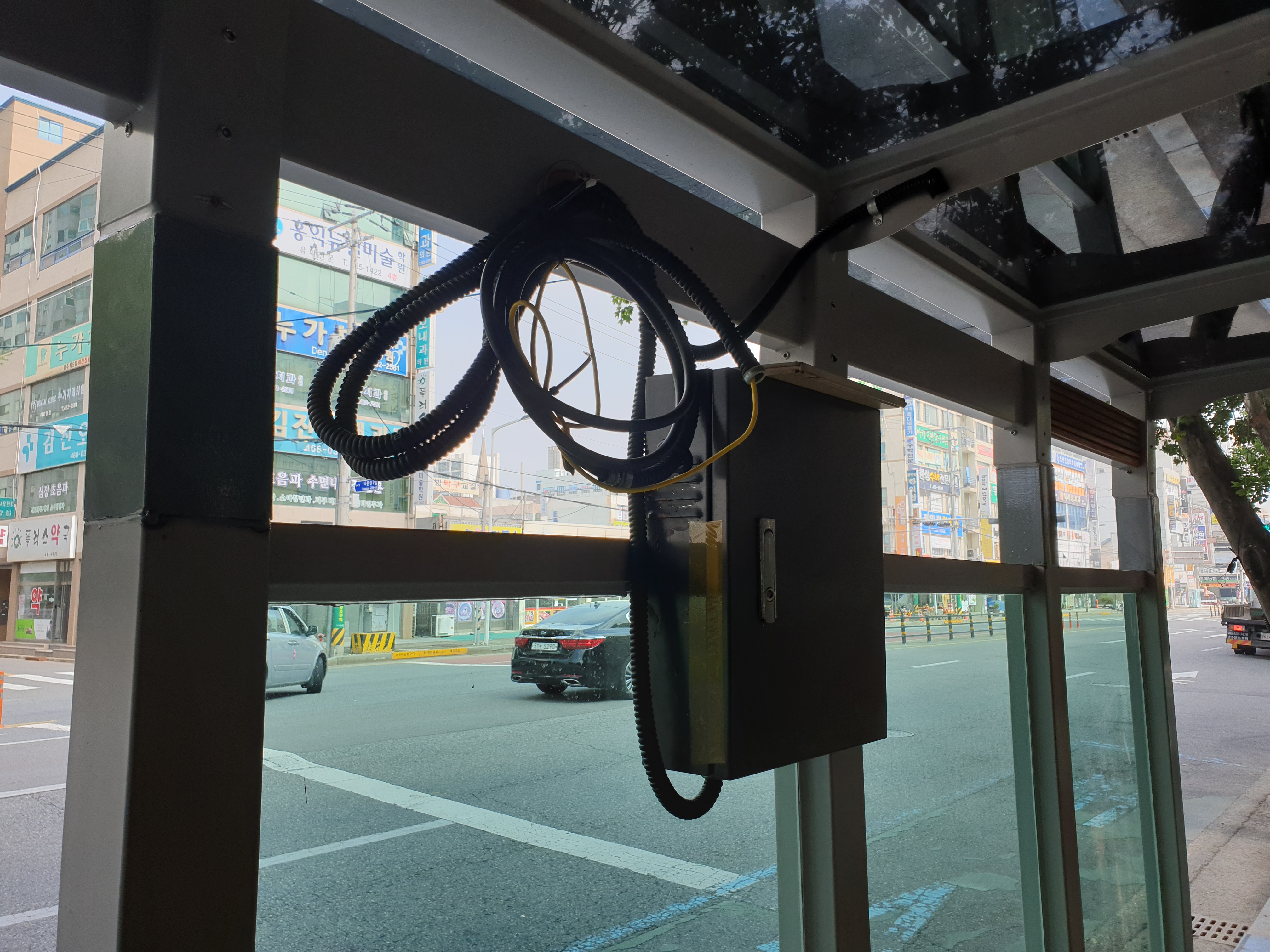 군산시 나운2동 주공5단지 신흥초등학교 옆 우리은행 부근에 버스정류장에 버스시간,번호 전광판있 설치가 수리되지안코있습니다