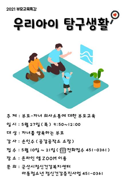 2021년부모교육특강우리아이탐구생활.jpg - 그림입니다.원본 그림의 이름: page-0001.jpg원본 그림의 크기: 가로 1125pixel, 세로 1625pixel (파일크기: 36 kb, 다운로드 : 750회) 미리보기