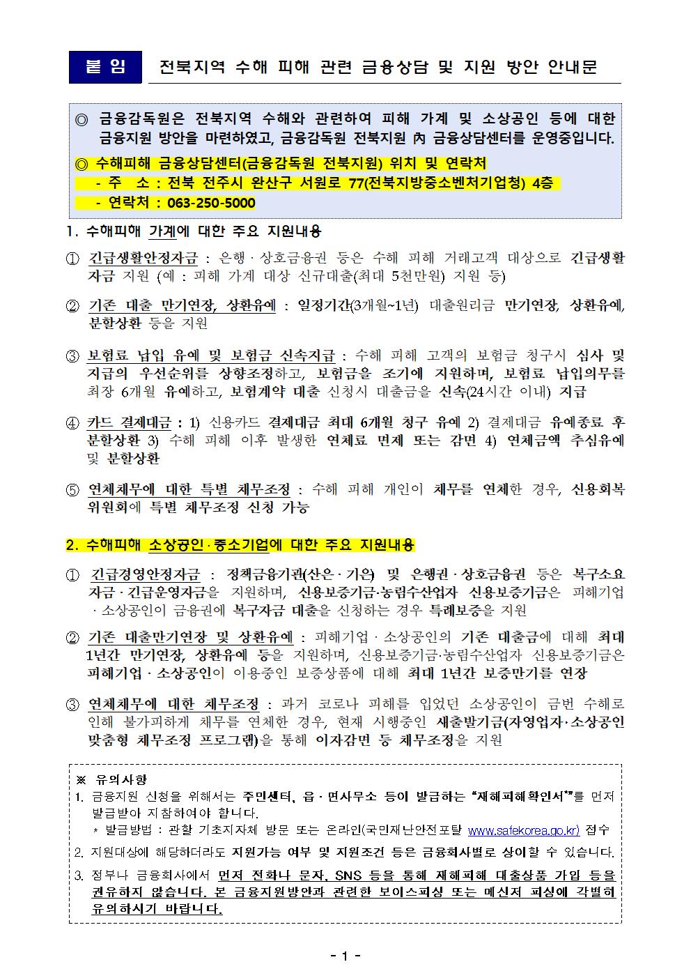 | 448 | 집중호우 수해 피해 금융지원방안 관련 안내 |