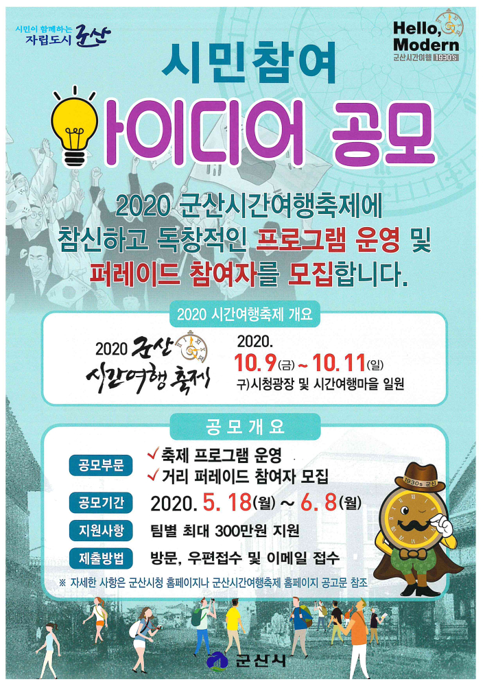 | 72 | 2020 군산시간여행축제 시민참여 아이디어 공모 |