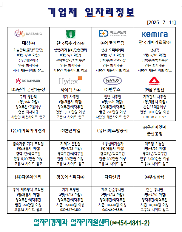 | 607 | 기업체 일자리 정보 |