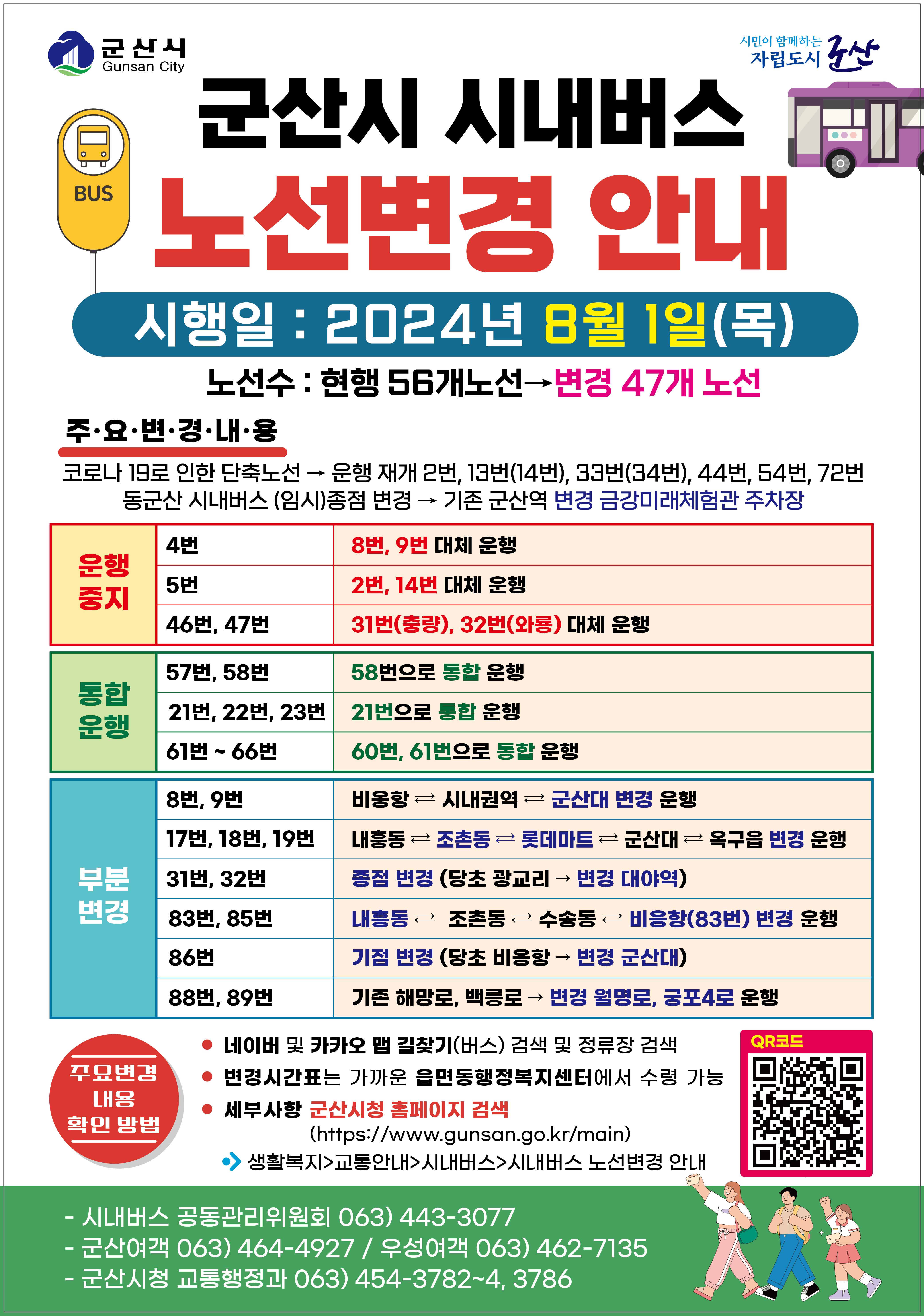 1. 변경일시 : 2024. 8. 1.(목) 첫차부터
