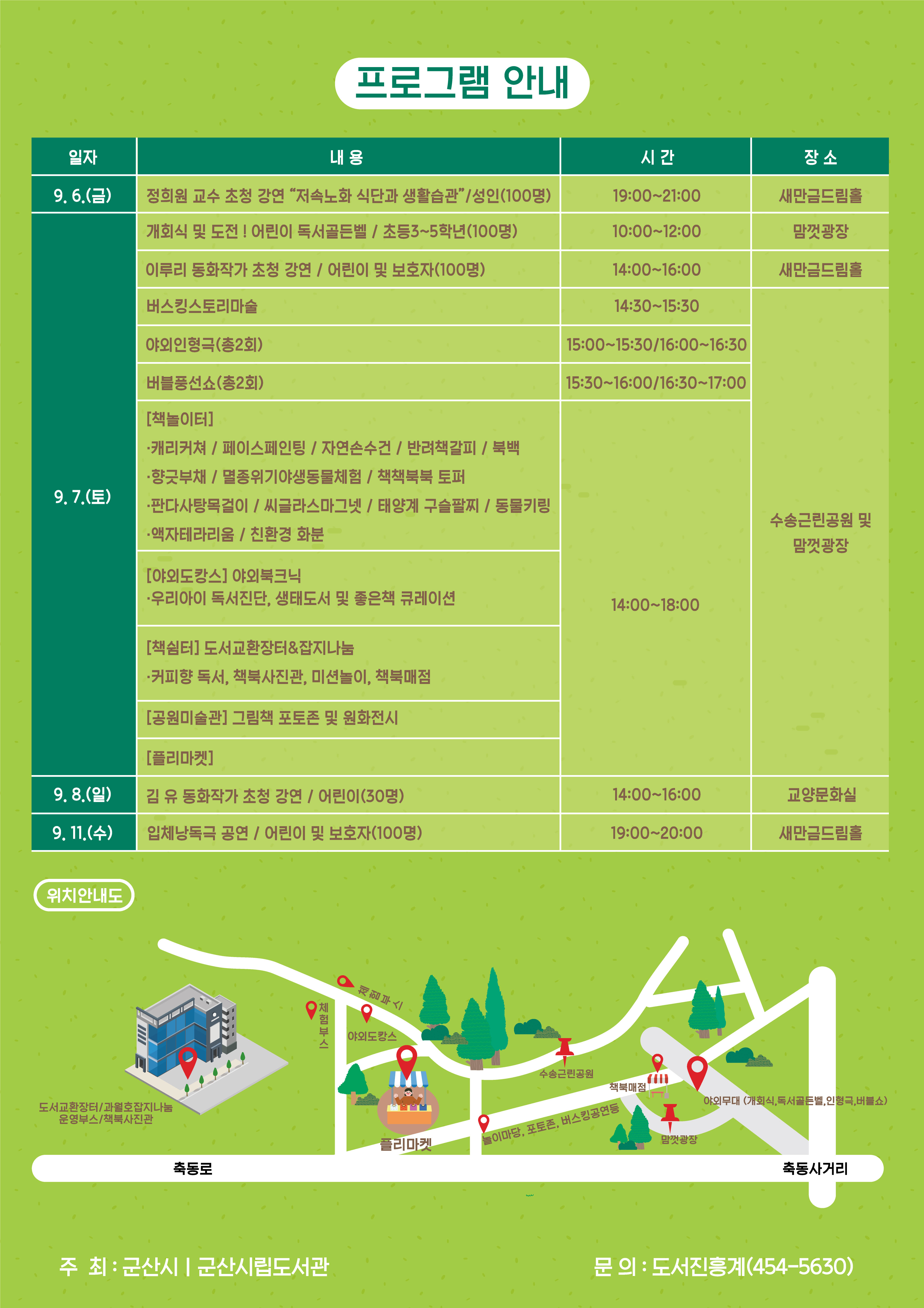 5. 주 최 : 군산시립도서관(본관) 및 분관 5개소, 작은도서관 13개소