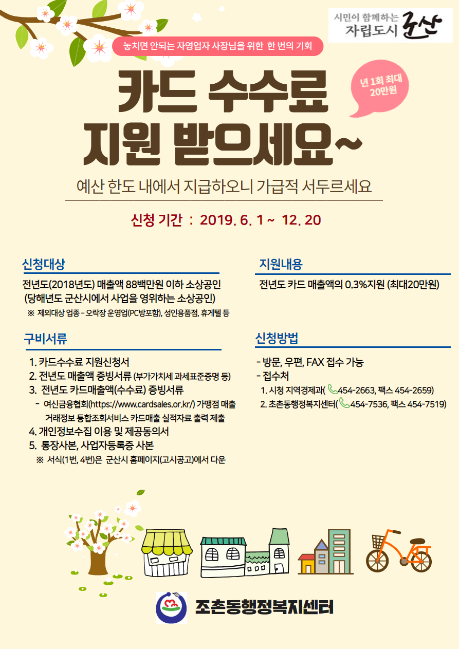 * 기타 사항은 시청 지역경제과 (063-454-2663), 조촌동행정복지센터(063-454-7536)로 문의