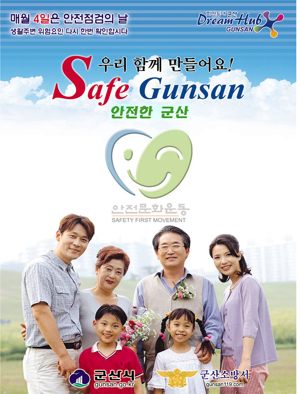 안녕하십니까? 평소 군산시 재난업무에 관심 갖아주셔서 감사드립니다. 우리시 재난관리과에서는 크게 자연재해와 인적재난 예방을 위한 활동과 복구활동 등 사업, 홍보, 24시간 재난상황실 운영을 하고 있습니다. 작년(2007년)초 4면으로 구성된 우리 함께 만들어요! Safe Gunsan 제목으로 시예산을 아울러 매월 4일 안전점검의 날로 정해 유동인구가 많은 곳을 정해 유관기관과 이번 11월에는 시외버스터미널, 구시청사거리, 시민문화회관앞, 보건소사거리, 필요하시다면 리플릿과 홍보물(치킨타올)을 다량 배부해 드리겠습니다. 문의사항은 재난관리과로 연락주시기 바랍니다. Tel : 450-4267